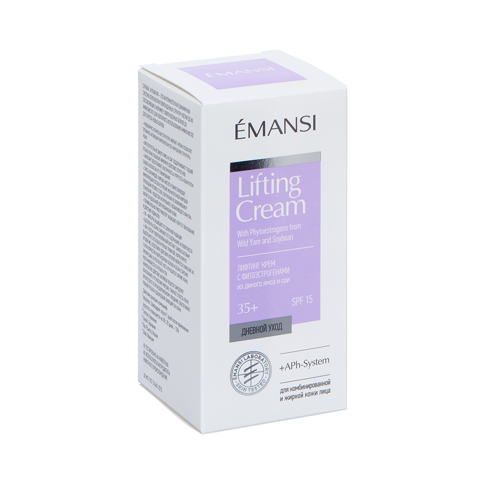 Лифтинг-крем для комбинированной и жирной кожи с фитоэстрогенами из дикого ямса и сои EMANSI + APh-System.